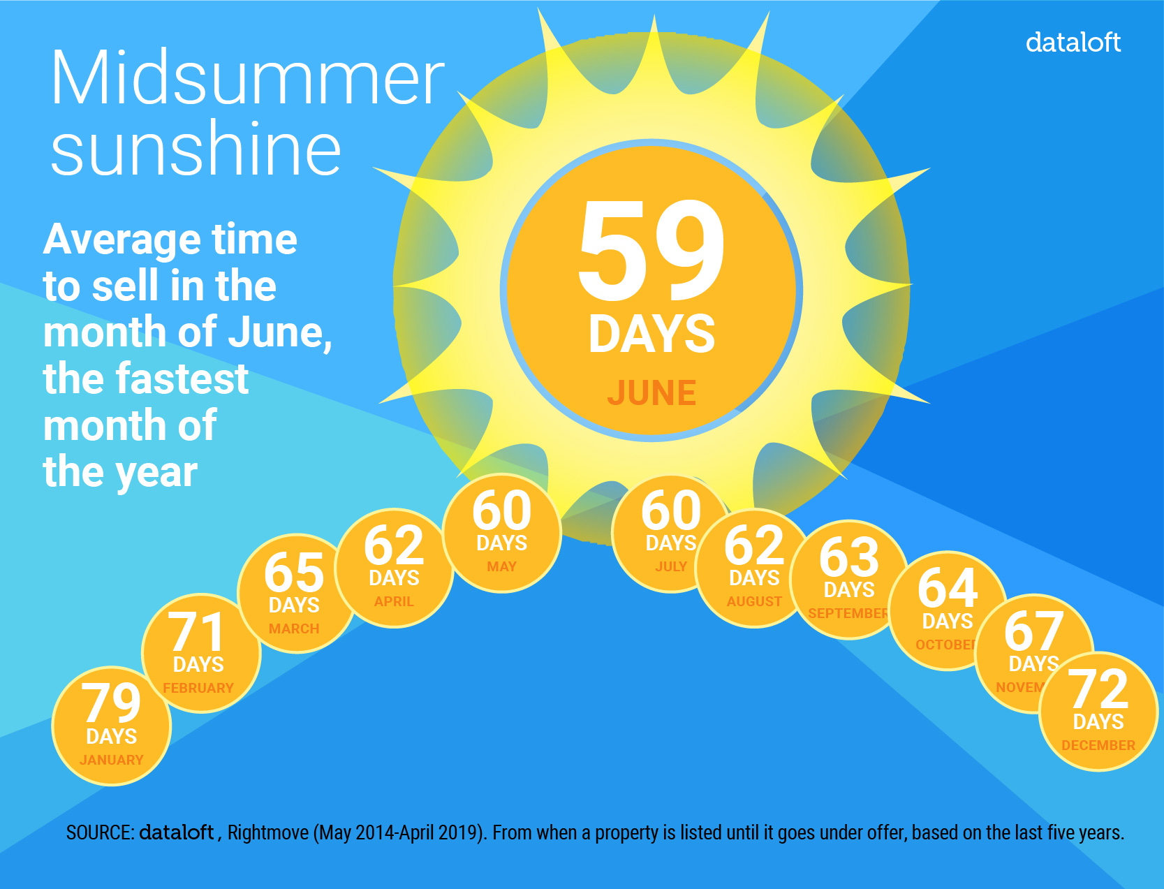 Based on the time a property is listed to when it goes under offer, analysis of the past five years of data from the Rightmove index indicates that property sells on average within 59 days in the month of June.