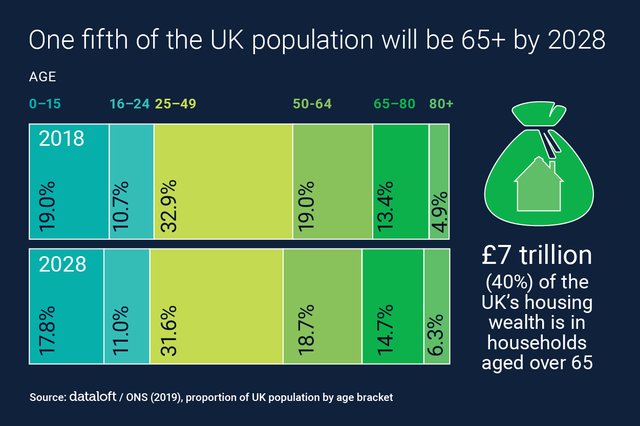 An estimated 40% of the UK's housing wealth (estimated to be over £7 trillion) is in households aged over 65, with more than 60% of this age bracket mortgage-free. Finding housing solutions for this demographic is crucial in unlocking the current housing shortage.