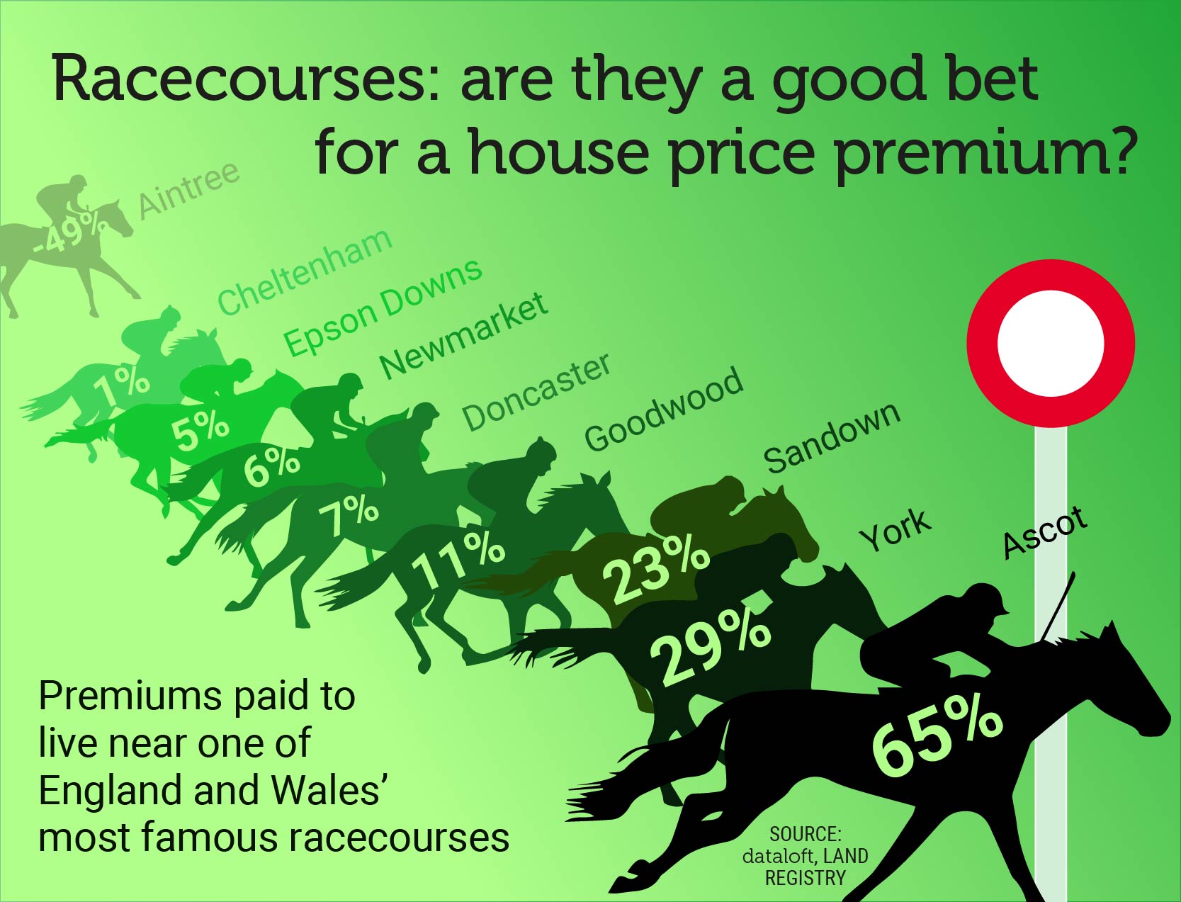 On average, properties close to racecourses sold for 8% more than the wider district area. Ascot was the winner with a 65% premium with Southwell in Nottinghamshire coming in second place (58% premium) and Taunton in third place (47% premium).
