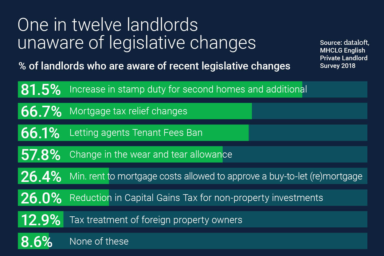 One in twelve landlords is unaware of a suite of legislative changes that occurred across the lettings industry in recent years, according to the findings of the English Private Landlord Survey 2018 published in January.